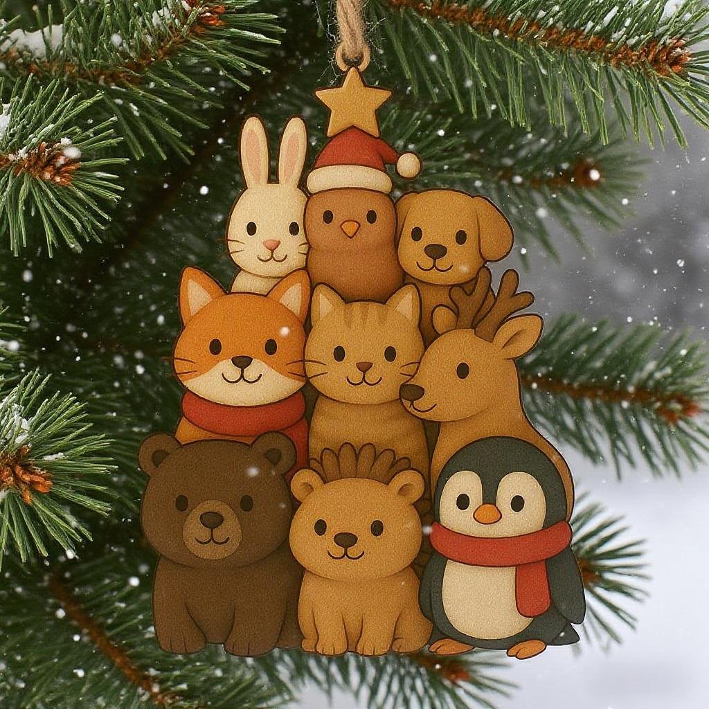 2025 Adorable Animal Stacked Christmas Tree Ornament