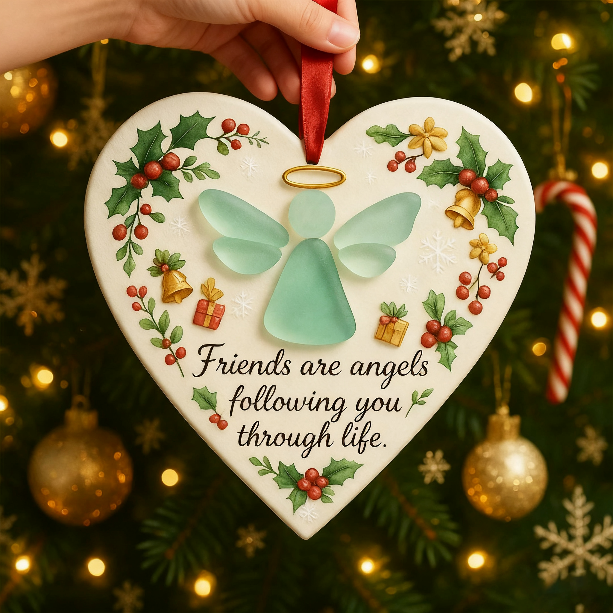 This beautiful heart-shaped ornament carries a touching message: “Friends are angels following you through life.” A gentle reminder of the people who make life brighter, it’s a perfect keepsake for the holiday season.🎁 Perfect for Any Occasion