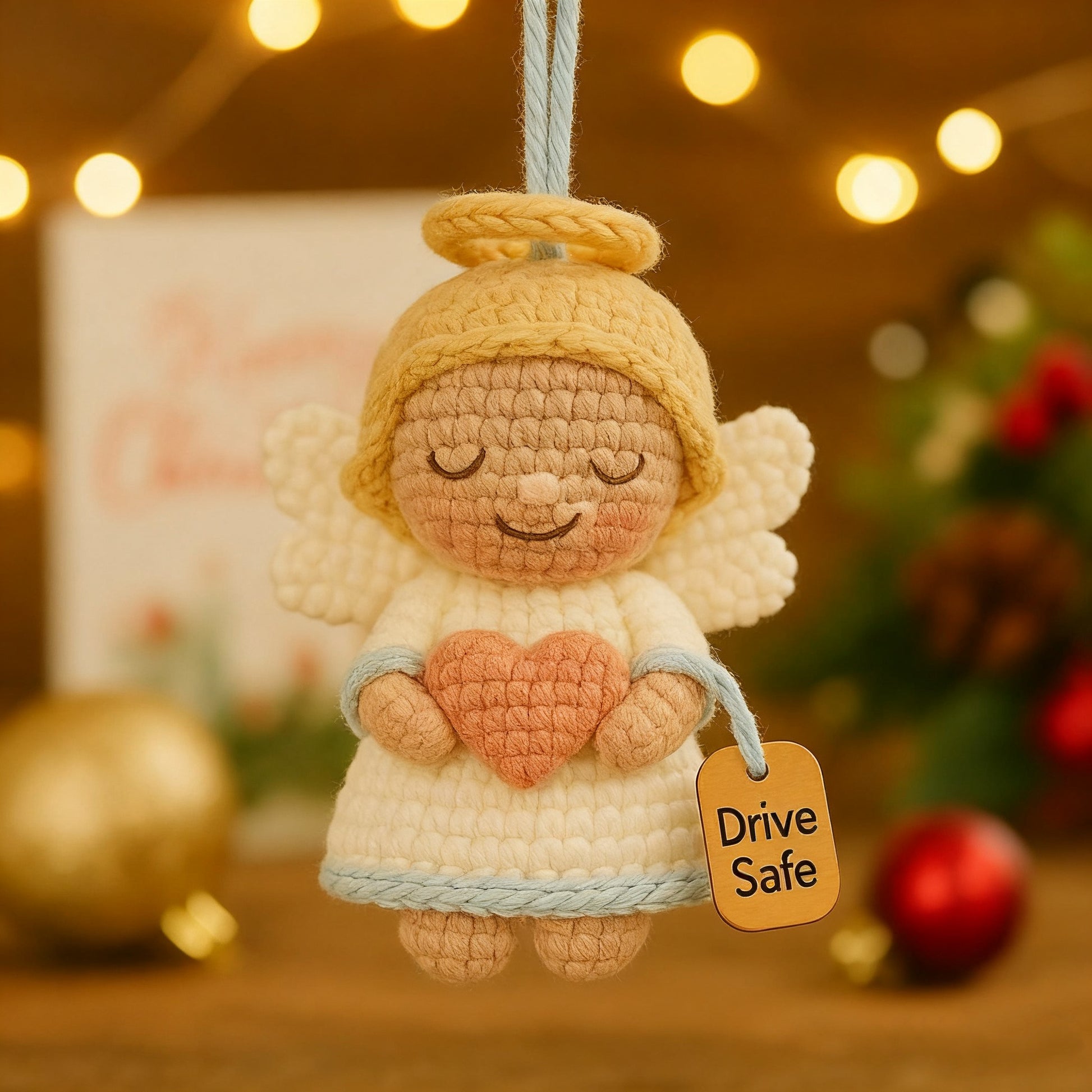 Bringing love and peace to your journey with this hand-crocheted 'Drive Safely' angel pendant!