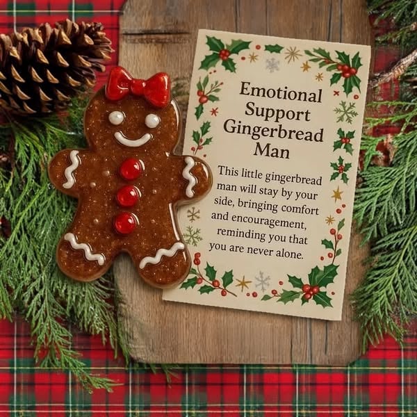 πMeet your little companion for comfort and cheer β the Emotional Support Gingerbread Friend.