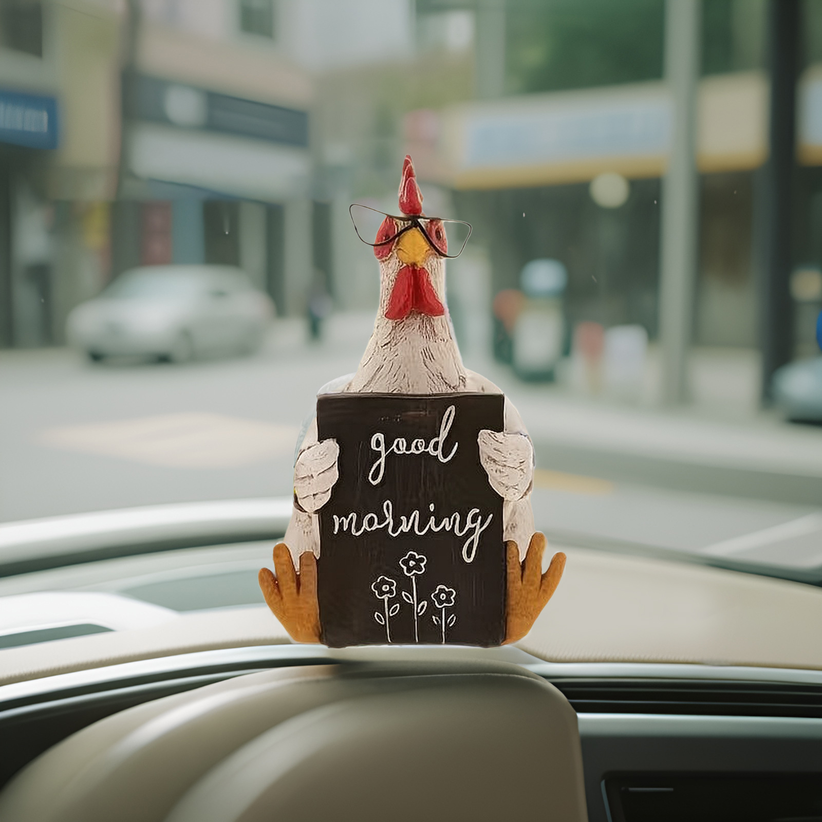 Crafted with intricate detail, this good morning chicken made of synthetic resin captures realism. Perfect for enhancing your space as a toy or tabletop decoration.