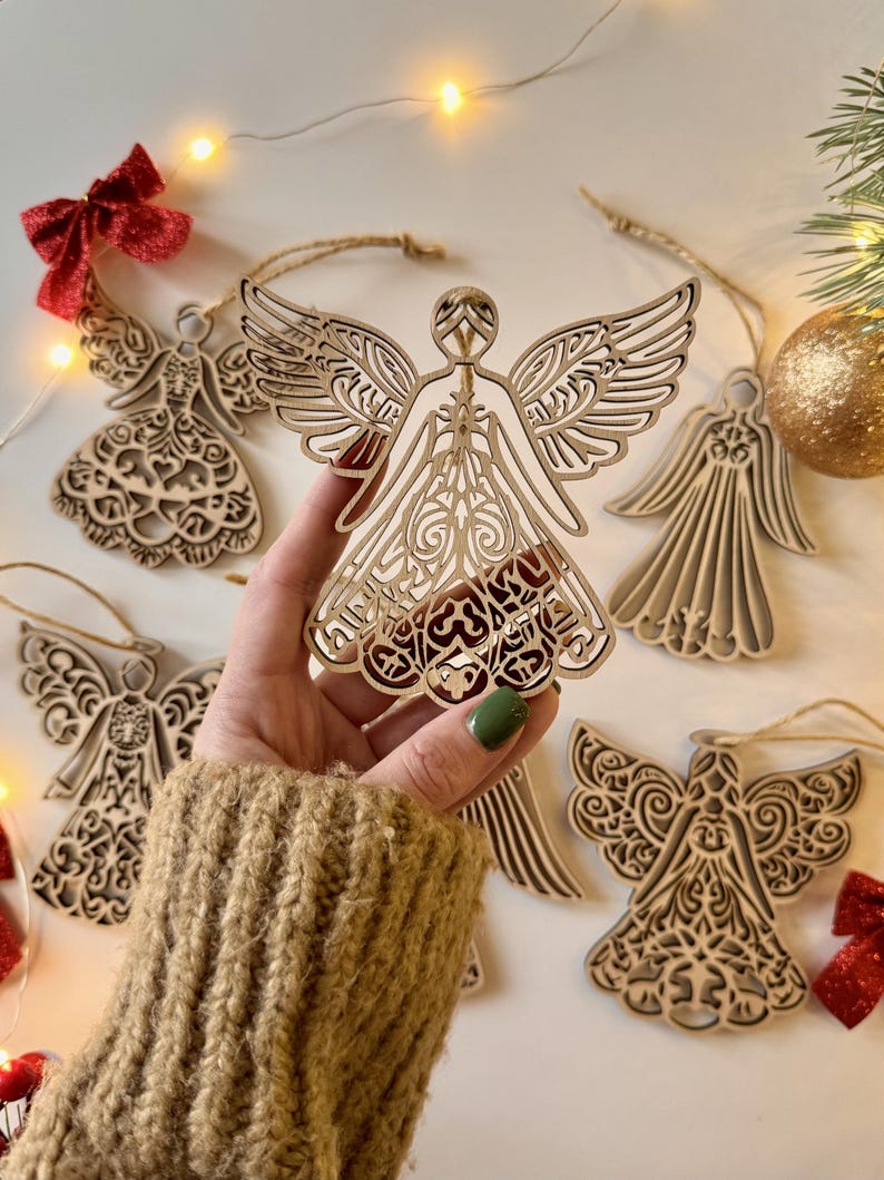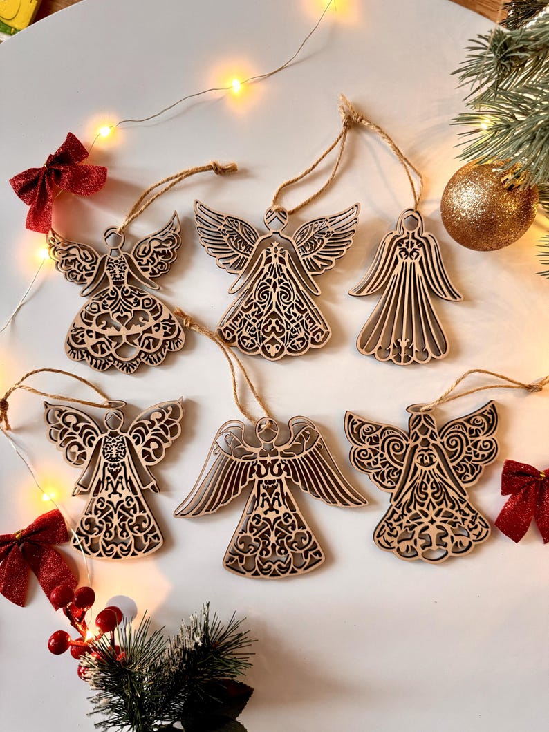 This exquisitely wooden angel brings timeless charm to your Christmas tree with its intricate openwork design. The ornament features a graceful angel with delicately detailed wings that captures the quiet joy of the season.